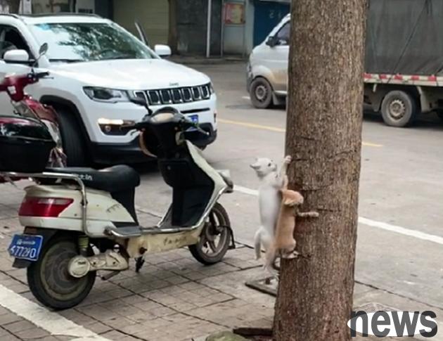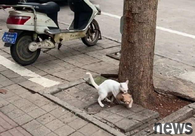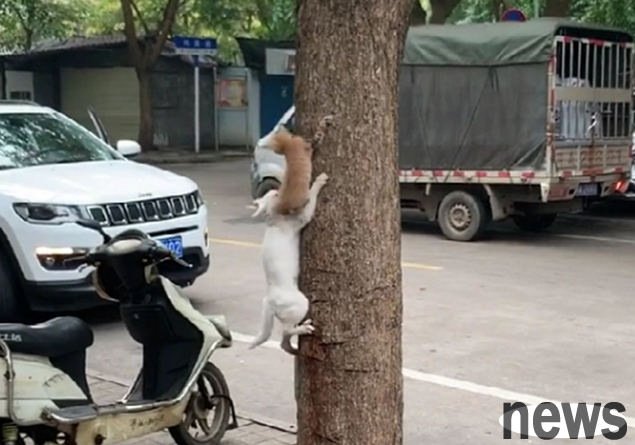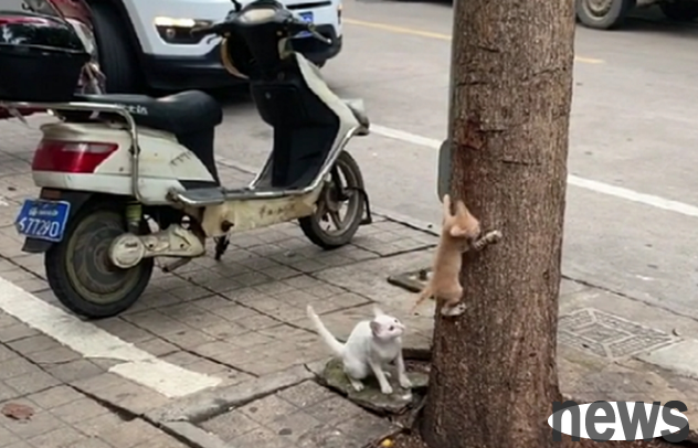 Although cats are good at climbing trees, it is easy to climb up the tree but difficult to get down. Especially some obese cats often encounter some trouble when getting down the tree. Not long ago, netizen A Ming saw a little orange cat on a tree on the street that had difficulty getting off the tree. The kitten was timid and nervous, but the behavior of the white cat next to it was heartwarming.