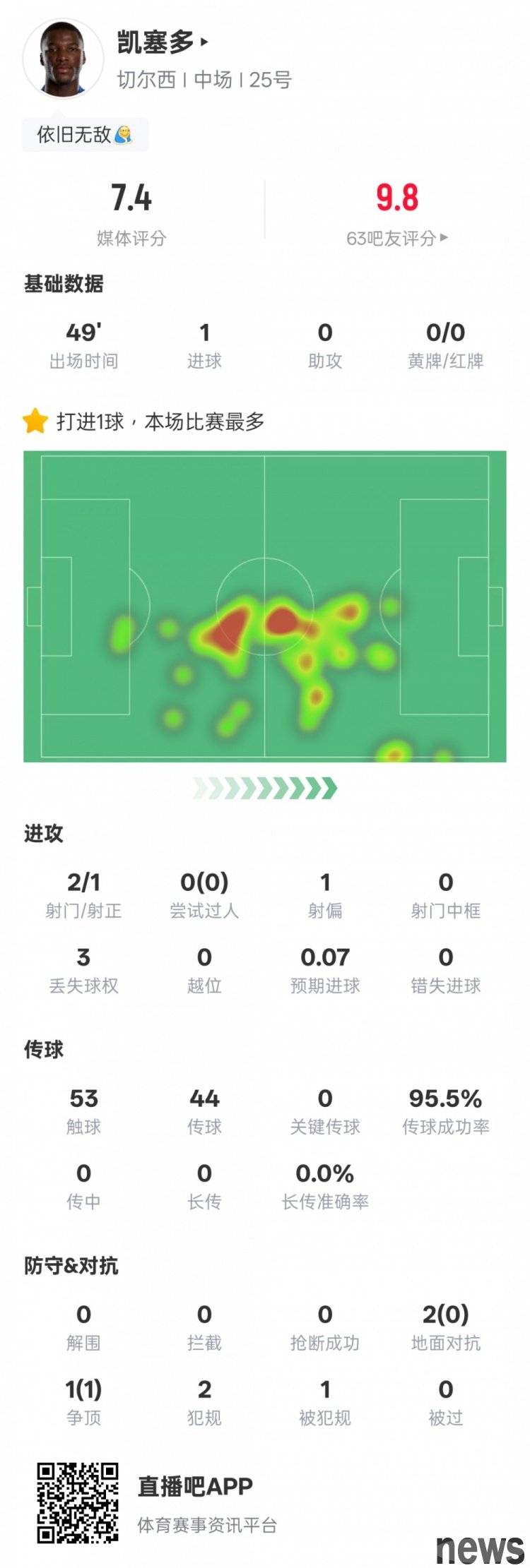Caicedo's statistics for this game are as follows: