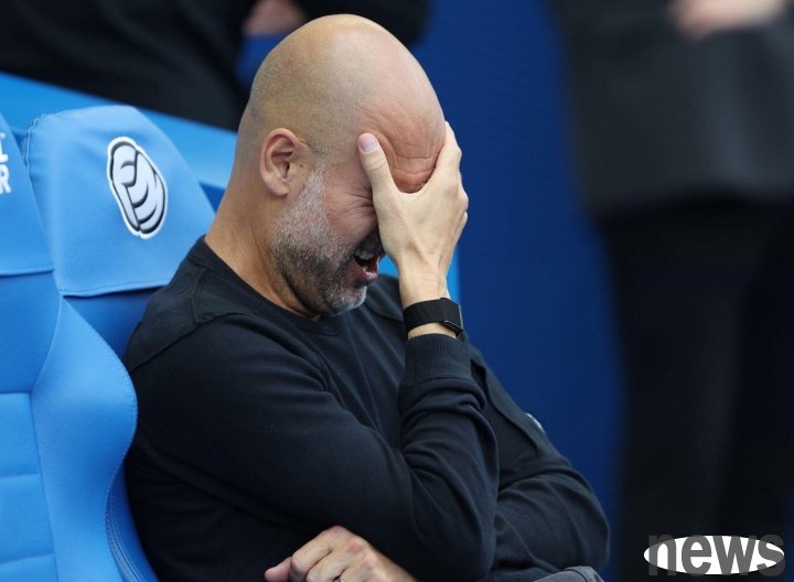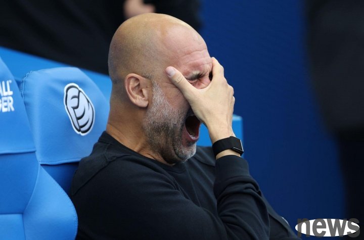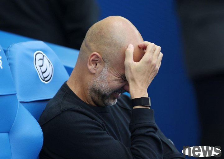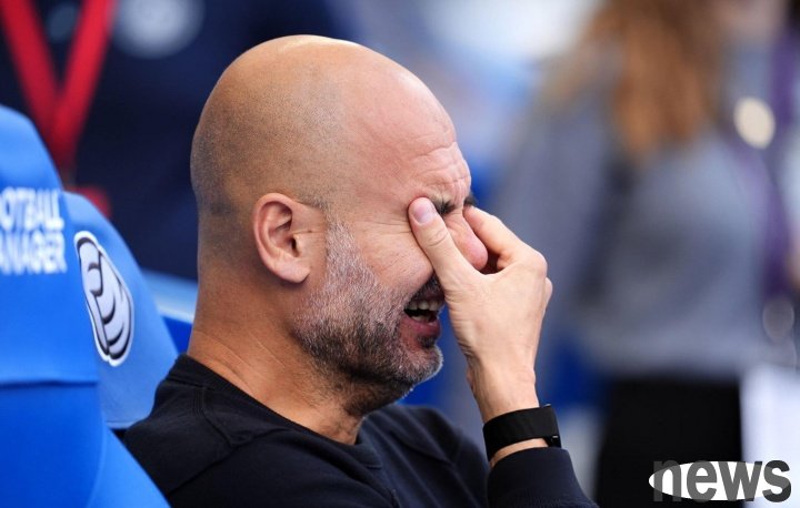 Extremely anxious! The camera captured Guardiola constantly rubbing his forehead while on the sidelines, grabbing his bald head