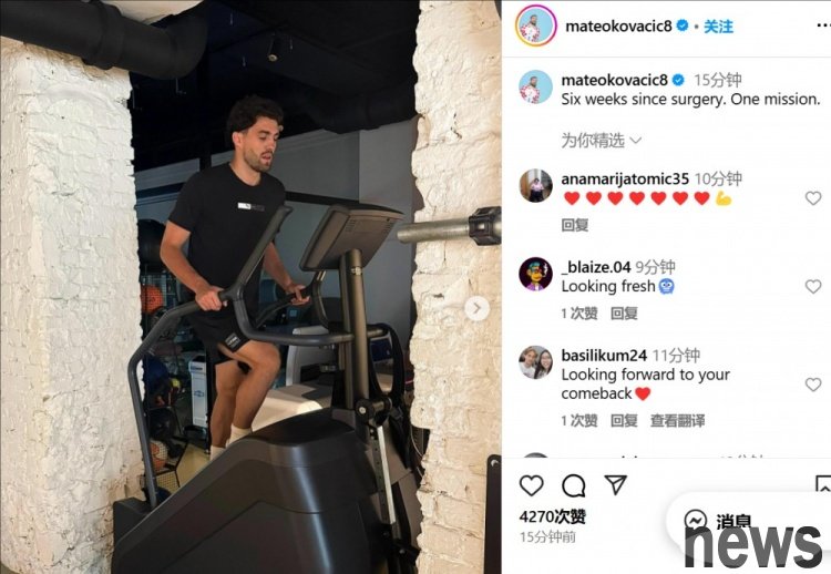 Not long ago, Kovasic posted his recovery training photos on social media. Kovasic wrote: Six weeks after the operation, it is only for one goal. Kovasic underwent Achilles tendon surgery in early June and missed the Club World Cup held in the Unite...