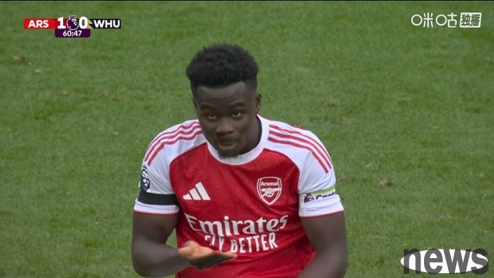 Premier League 7th round, Arsenal vs. West Ham United. In the 60th minute of the game, Saka was hit on the face by his opponent and some blood came out of his nose....