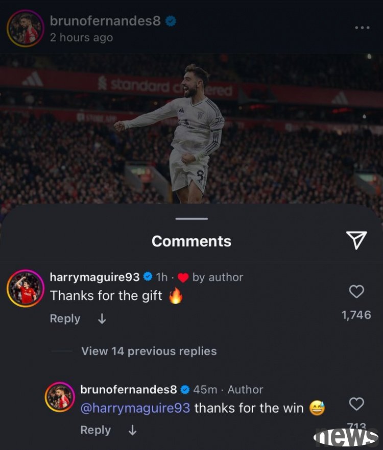 B Fee posted photos on social media after the game to celebrate the victory. Maguire left a message: "Thank you for the gift."