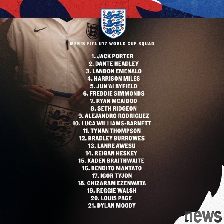 The 2025 U17 Men's Football World Cup will be held in Qatar from November 3 to 27. This tournament will be expanded to 48 teams for the first time. England U17 announced the participating list. England U17 List 1.Jack Porter 2.Dante Hedley 3. La...