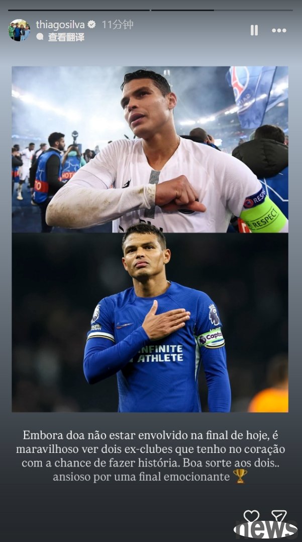 In the Club World Cup final, Paris Saint-Germain played against Chelsea, and Brazilian central defender Thiago Silva, who once played for the two teams, posted a message on social media.