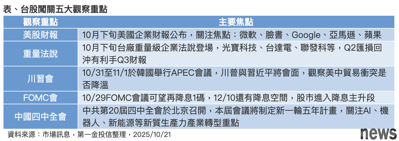 Zhang Zhengzhong pointed out that in terms of politics and policy, attention will be paid to whether the Trump-Xi meeting in South Korea at the end of October will help ease the U.S.-China trade conflict. The Federal Reserve meeting will cut interest rates again, leading the stock market to enter the main stage of interest rate cuts and increases. There will also be China’s Fourth Plenary Session, and a new round of economic policies will benefit industries, which will bring expectations for the market outlook.